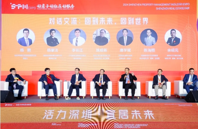 論壇高峰對話環節由北京中物智匯資訊科技股份公司創始人楊熙主持。深圳市物業管理有限公司黨總支書記、執行董事姚成新,深圳恒車通停車服務有限公司創始人唐學斌,廣東省物業管理行業協會常務副會長李長江,招商局積餘產業運營服務股份有限公司董事、總經理陳海照,綠城物業服務集團有限公司董事會主席楊掌法,之平管理董事、執行總裁余紹元等人圍繞《回到未來,回到世界》主題展開了熱烈討論,並分享精彩觀點。